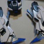 おはようございます🎵EGストライクガンダムライトパッケージグレーのパーツをガンメタで塗りました。パチ組み武器付きと並べてみました(^^)v今日明日は静岡ホビーショー行かれる方は楽しんでください(´ 3`)#ガンプラ #ガンプラ好きと繋がりたい #EGストライクガンダム