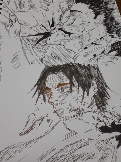 1 17 乙骨くんのまさかのゴキブリキス #一発描き #絵描きさんと繋がりたい #呪術廻戦 #ペン画 22/03/23 00:39