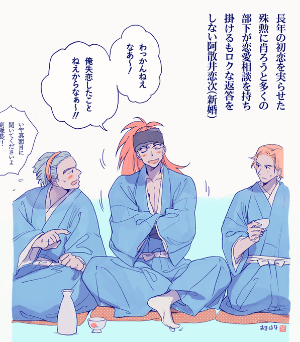 20 162 過去絵だけど向かって右の隊士は彼のつもりで描いたのだった 髪の色はアニメもカラー版コミックスも確認してないので適当… 22/11/07 22:57
