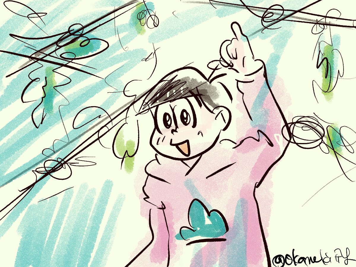 落書き帳に書き殴り(ジャスのつもり) シャワりつつ聴いてた松ステBGM メチャ好きなんだわと再確認するよぱらいです 自分歴の一生好きなジャンルに刻まれた作品よね 勿論 松アニメも!! #かめ記幀