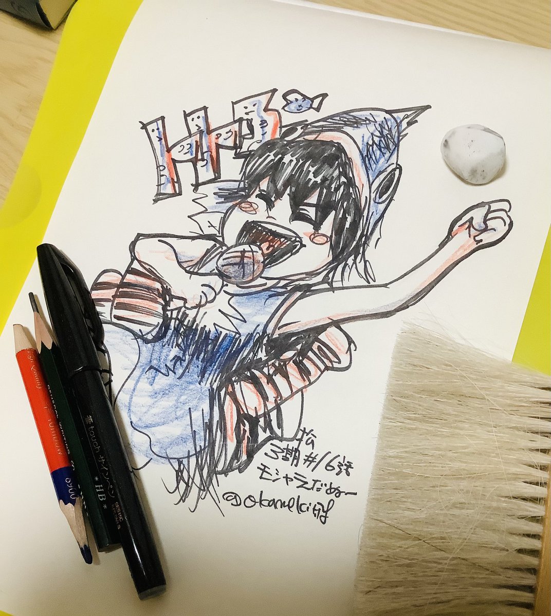 1 23 酔っ払いアナログ模写落書き 紙はザラザラしてて描きやすいぬん #かめ記幀 21/07/20 20:59