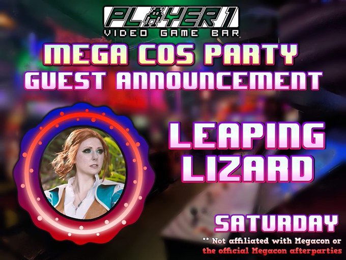 Geckos! Come have a drink with me!!! Friday and Saturday night at Megacon! I’ll be at @player1orlando with the amazing @hanari502 and my bestie @soullessraycosplay #megacon #megaconorlando #megacon2022 #megaconafterparty #cosplay #cosplayer #ladydimitresc