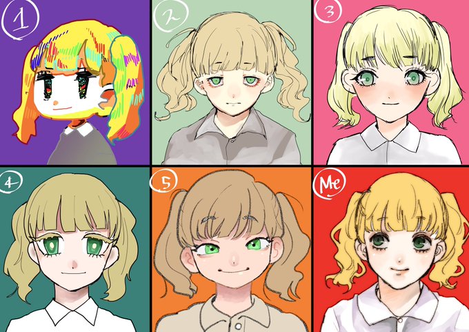 #いいねした人の絵柄を真似してバレたら嬉しい ファボありがとうございました! 四肢子ちゃんで統一してやりました 誰が誰だか当ててみてください🎉