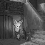 According to an italian legend, witches could be stopped from haunting houses by leaving a broom outside so that they loose time by counting its wires until dawn. Fenneko always found a phone instead :v #fanart #inktoberday8 #inktober2020 #foxtober #witchtober #drawing