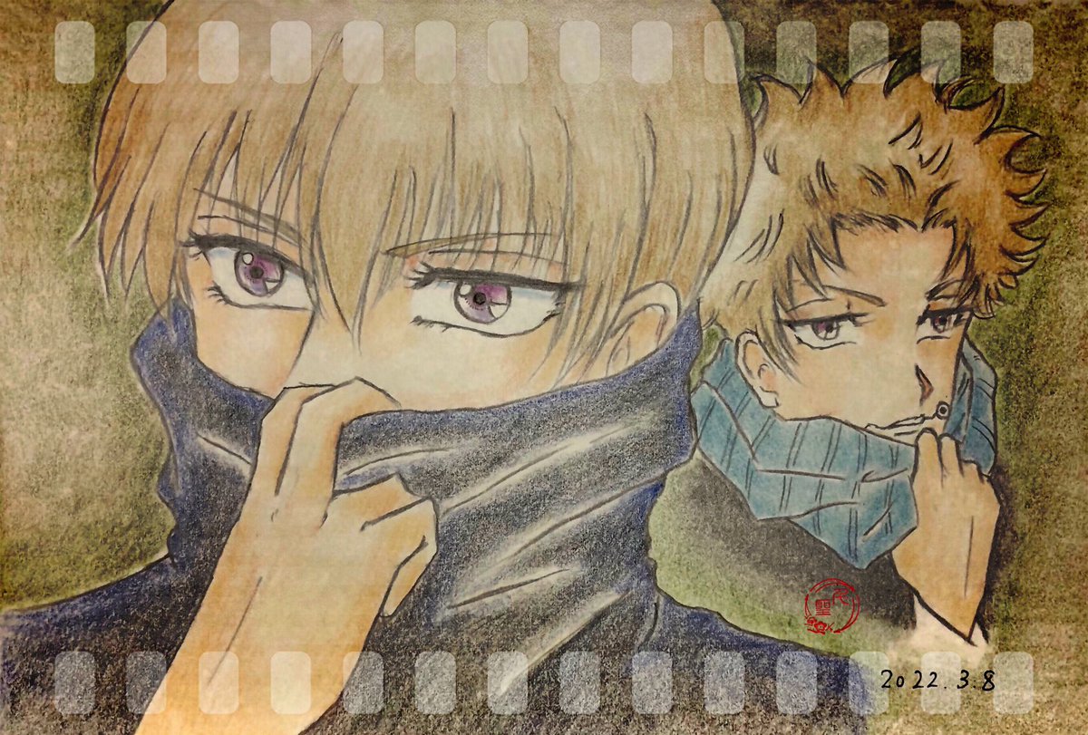 1 5 原作版とアニメ版の過去絵(模写)でお祝い🥂 #五条悟誕生祭2022 22/12/07 18:27