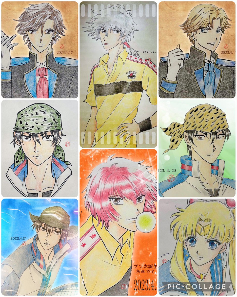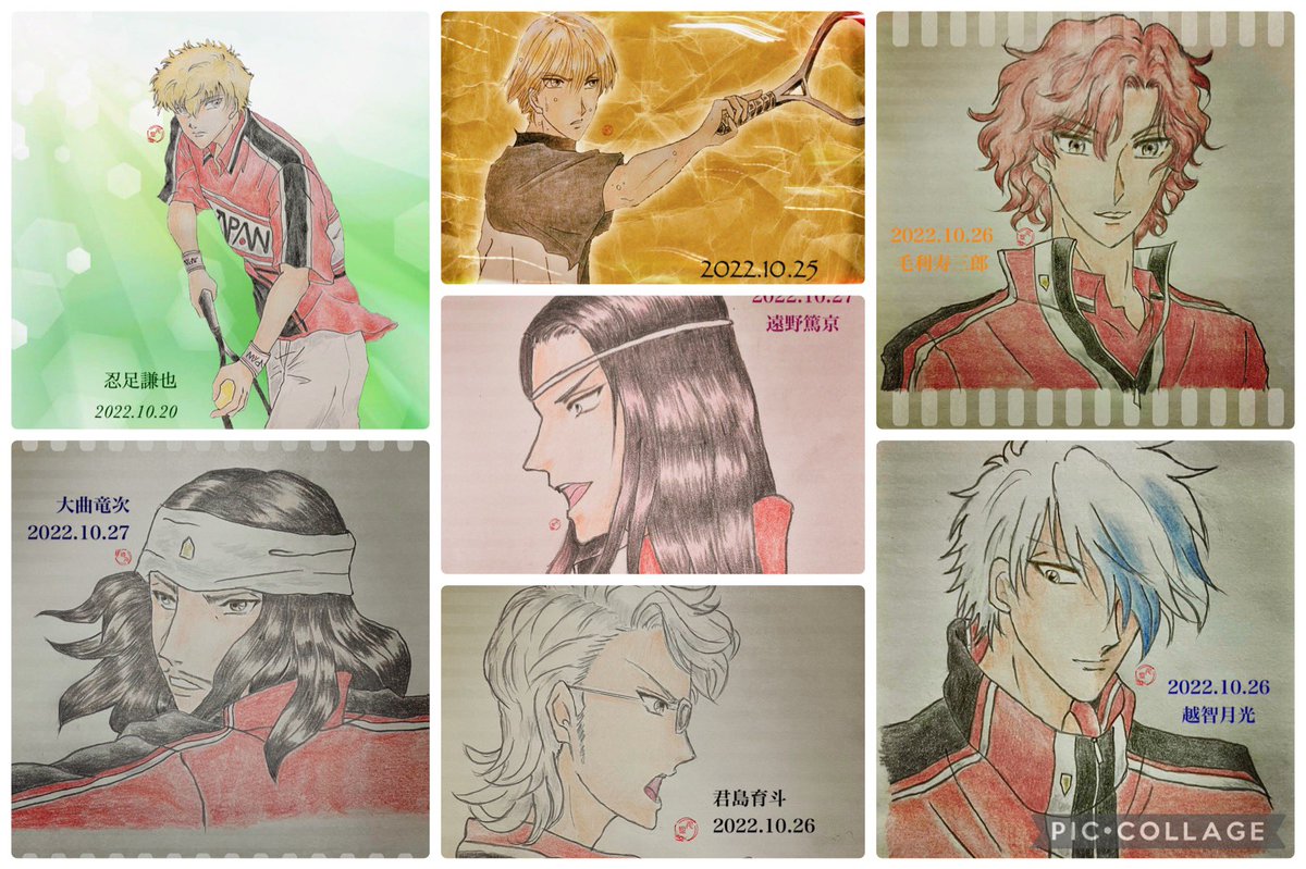 前半戦はこんな感じだった。 白石、岳人、猫ちゃん、お若い頃の竜崎先生、赤也くん。 #今月描いた絵を晒そう