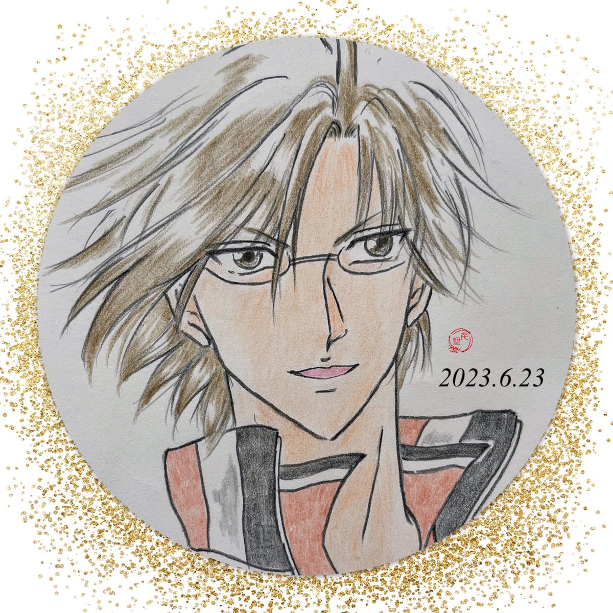 今年の初描きは手塚部長にした😇最早正月🎍と言うより七草だね。 眼鏡キャラの眼鏡を描くのが苦手👓はスタンプ…手塚部長、たまにコンタクトにせえへん?🙄
