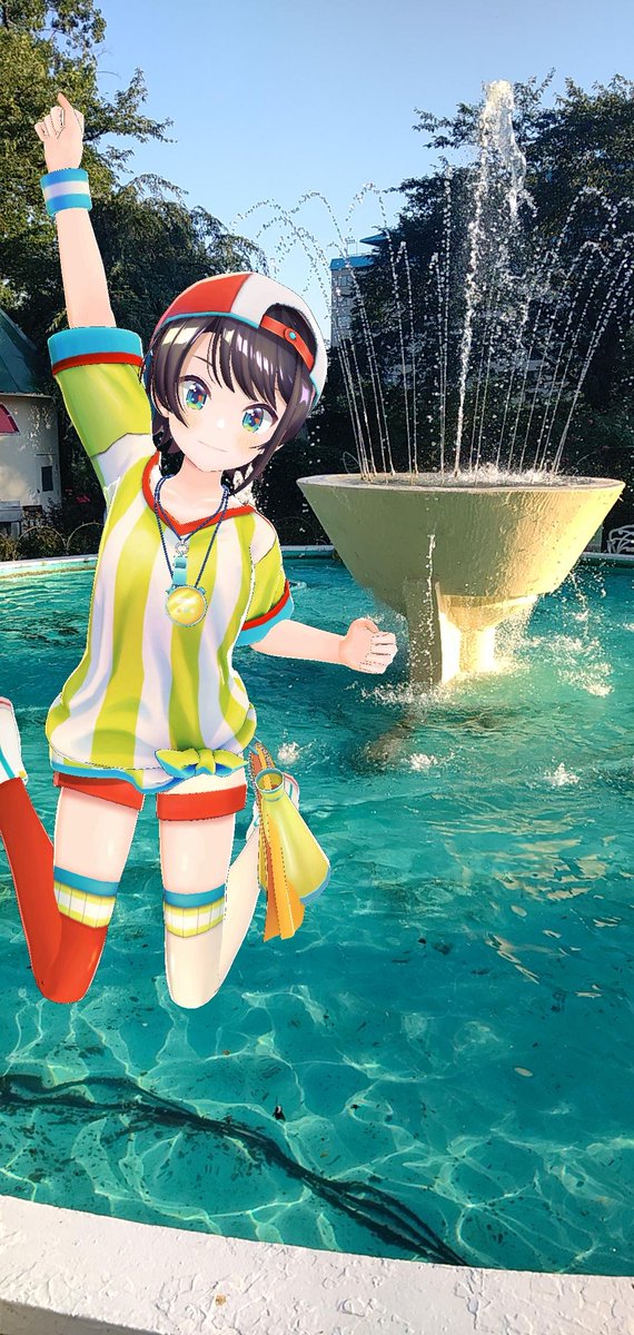 海とかプールに行きたいと言ってたので噴水前でパシャリ #大空スバル #プロテインザスバル