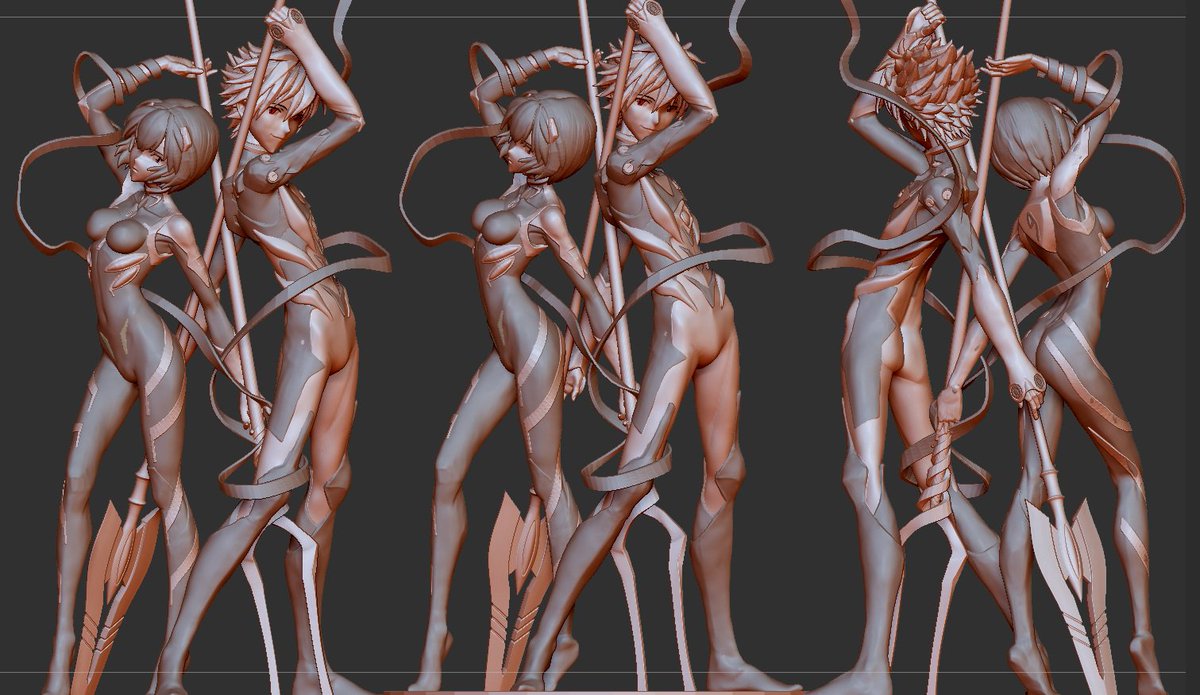 綾波とカヲル君の画像にたくさんのいいねとリツイートありがとうございますm(_)m 全体的にバランス変更しつつ表面を綺麗にしました。 綾波とカヲル君 #zbrush #エヴァンゲリオン