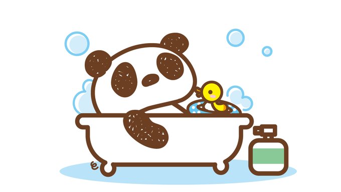 おはよう! お風呂が嬉しい時期になってきたね。 おうちぱんだはお気に入りのピヨちゃんと一緒に入るよ。 入浴剤はしゅわしゅわするのが好き❤️ あなたの好きなお風呂グッズは何ですか? #おは戦41019os🌊 #お風呂 #イラスト