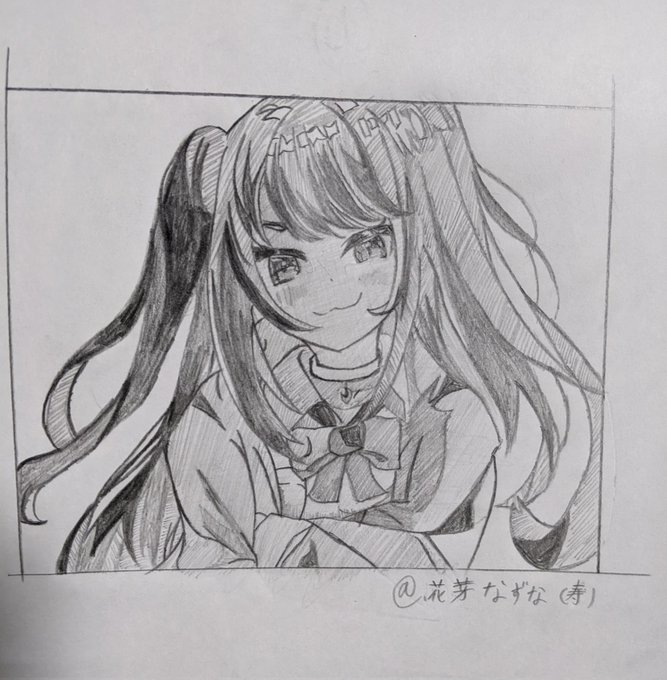 365日ぶいすぽチャレンジ6日目ミミたや描いたけど紙のスペース足らんかった……何か二人のツーショットっぽくなったかな?.#ミミ画.#兎咲ミミ.#花芽すみれ.#すぅあーと.#ぶいすぽ.#イラスト練習中.#イラスト企画.