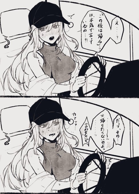 「私服ビスマルクとドライブデート」でご依頼ありがとうございました!! ブーストまでして頂いたのでお礼の落書き2コマ漫画です!エクサランスさんに喜んで頂けたようで、とても嬉しかったです〜!☺️🥳