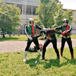昨日の写真、自分もUPします! 1号…高井美姫さん@TakaibikiBousou 2号…三影龍太郎師匠。 ショッカーアフリカ支部戦闘員…私。 #仮面ライダー #ショッカー戦闘員 #コスプレ博
