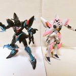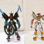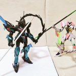 ギラーガとの比較。 カラーリングはともかく、クリアパーツのエフェクトの形や頭部、腕周りと足周りにアーマー状のパーツが追加されていてガラッと変わってますね。 #ガンプラ