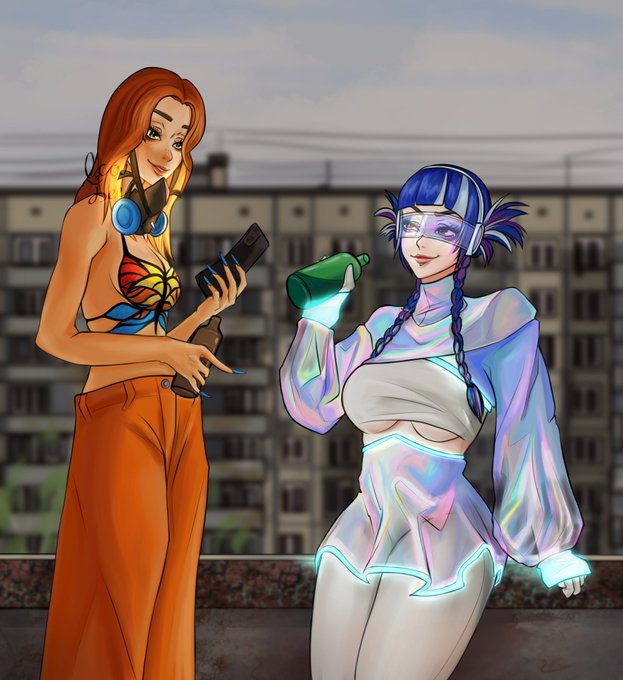 Two friends, vibing in the neighbourhood, the most usual way slavs do lol #digitalart #myart #OC #myOC #originalcharacter #artistontwitter