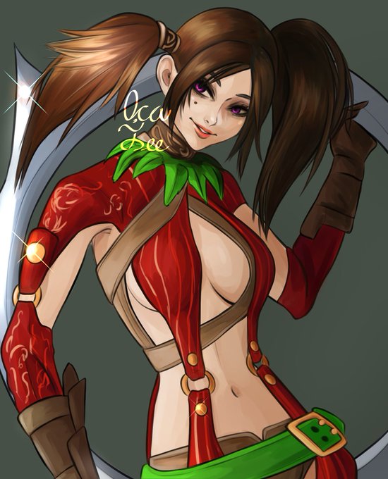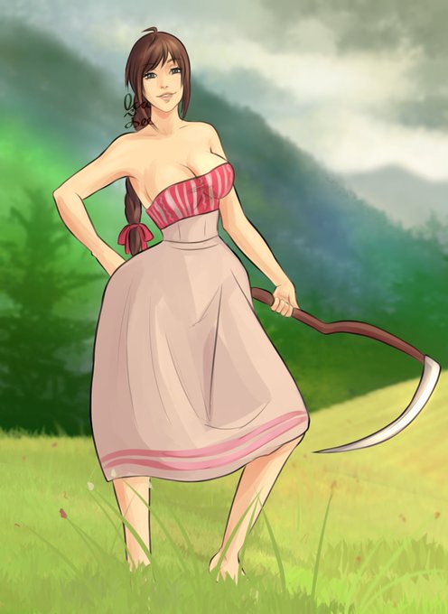 Sláva in the middle of a summer day ready for some harvesting work~ Been a while since I tried for a full body artwork with a background huh 😄 #digitalart #myart #OC #myOC #originalcharacter #artistontwitter #Soulcalibur #SoulcaliburVI
