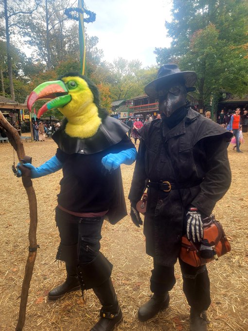 Obby is live now! We're having a show-n-tell, come hang! twitch.tv/obbythebird #twitch #twitchaffiliate #toucan #cosplay #plaguedoctor