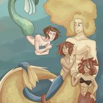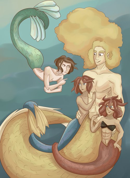 More #Mermay2020 art! ^_^ An overcomplicated love four-angle where everyone wants everyone. I love writing those. #Mermay #Mermaid #art #ArtistOnTwitter #digitalartwork #fantasycreatures #fantasyart #originalcharacter #originalart #digitalart #artwork #painttoolsai #MediBang