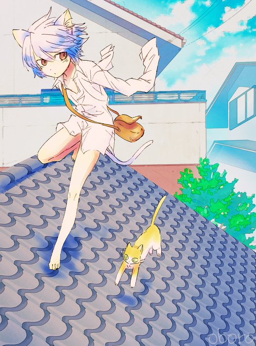 屋根さんぽ #アイビスペイント #ねこ #女の子 pixiv.net/member_illust.…