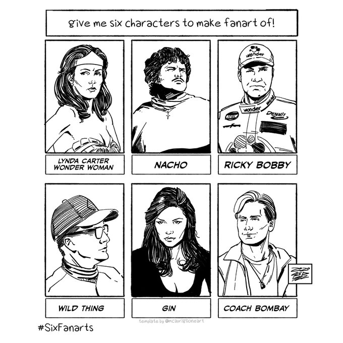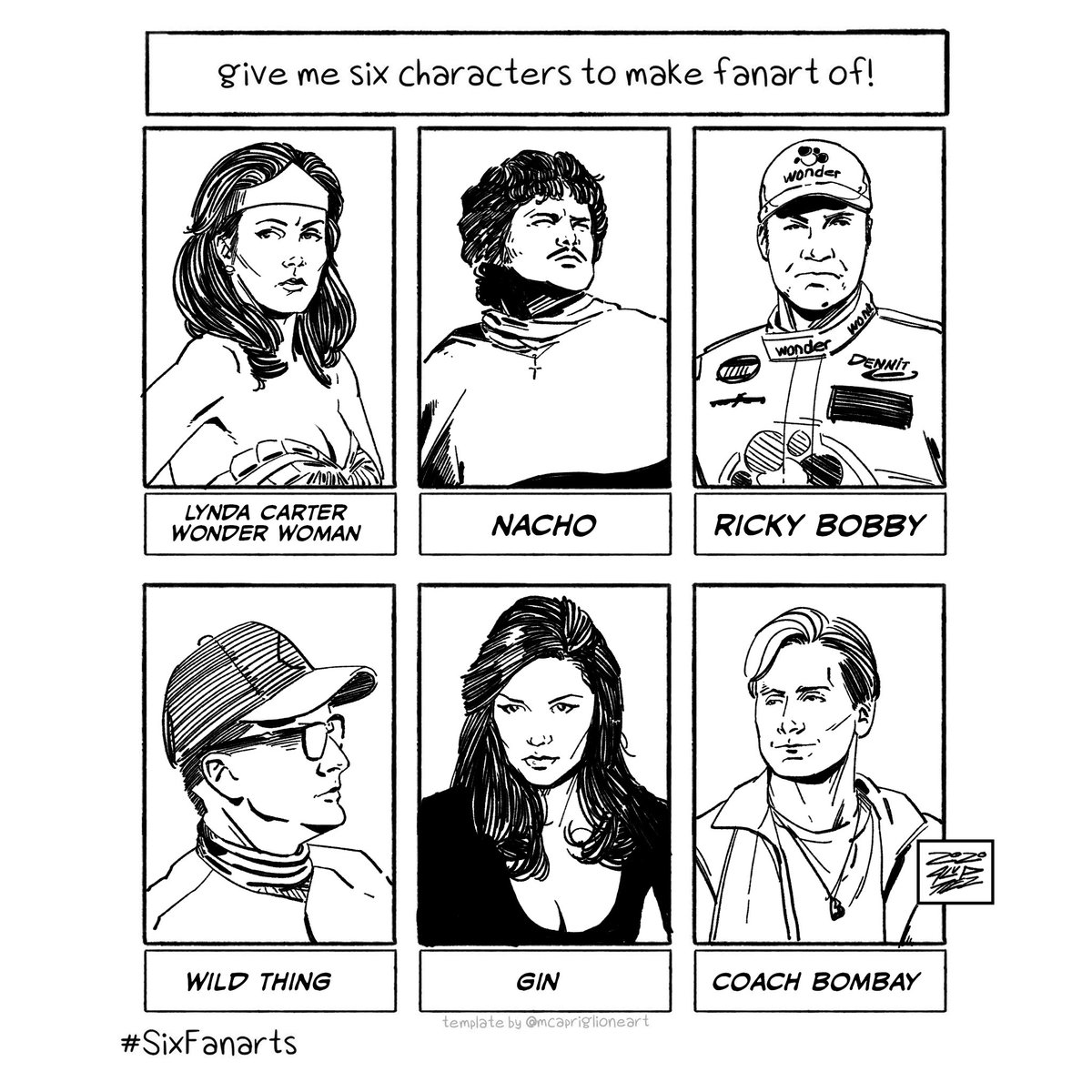 #SixFanarts Vol. 5 - Lynda Carter Wonder Woman - Nacho - Ricky Bobby - Ricky "Wild Thing" Vaughn - Gin - Coach Gordon Bombay