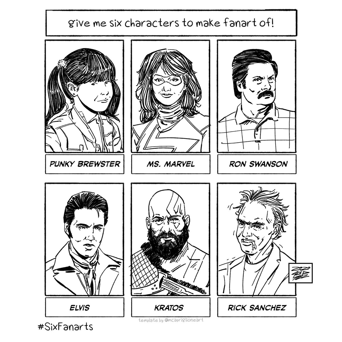 #SixFanarts Vol. 7 - Punky Brewster - Ms. Marvel - Ron Swanson - Elvis Presley - Kratos - Rick Sanchez