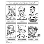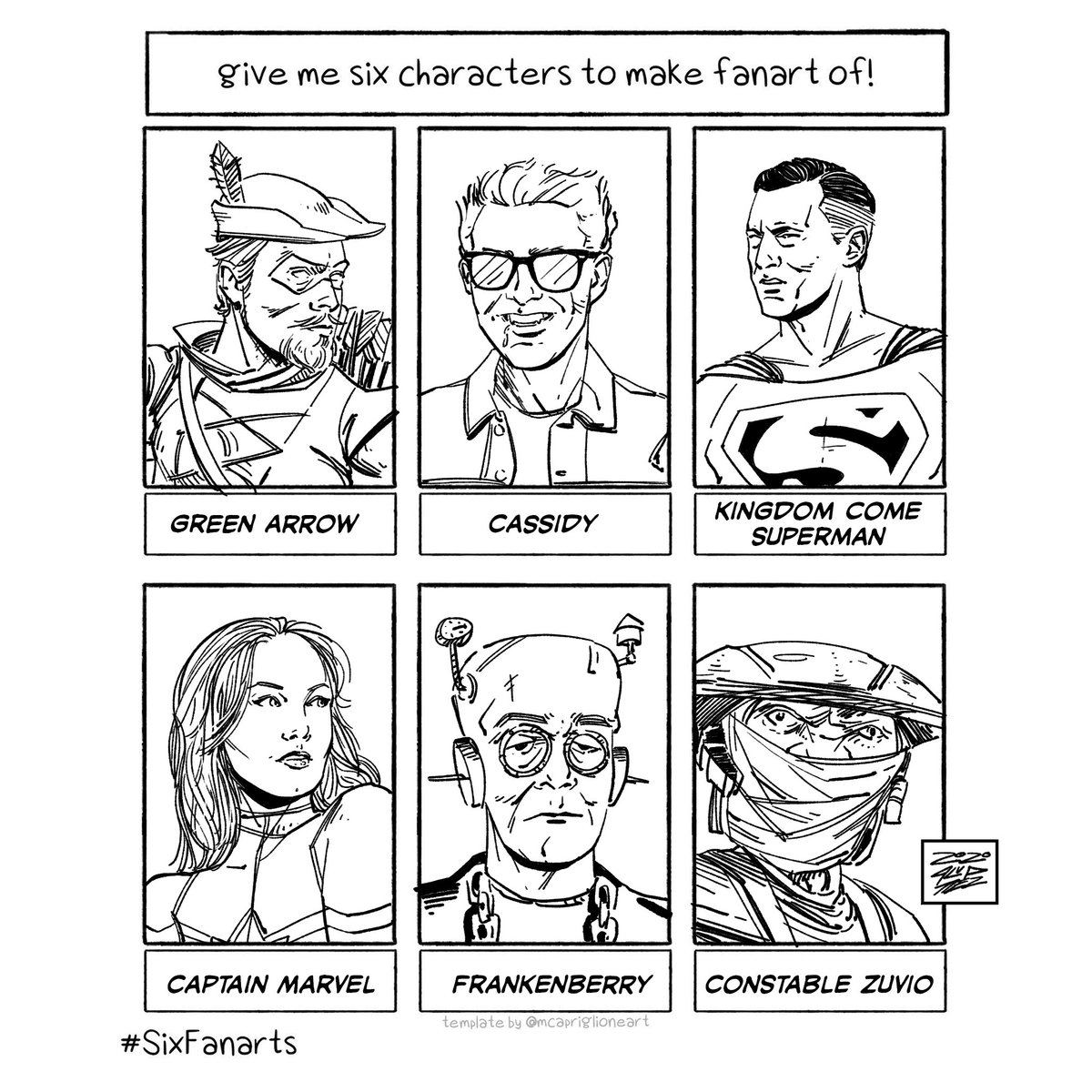 #SixFanarts Vol. 8 - Green Arrow - Cassidy (Preacher) - Kingdom Come Superman - Captain Marvel - Frankenberry - Constable Zuvio I can tell I've been watching too much King of the Hill since Cass and Frank look like Dale and Hank.