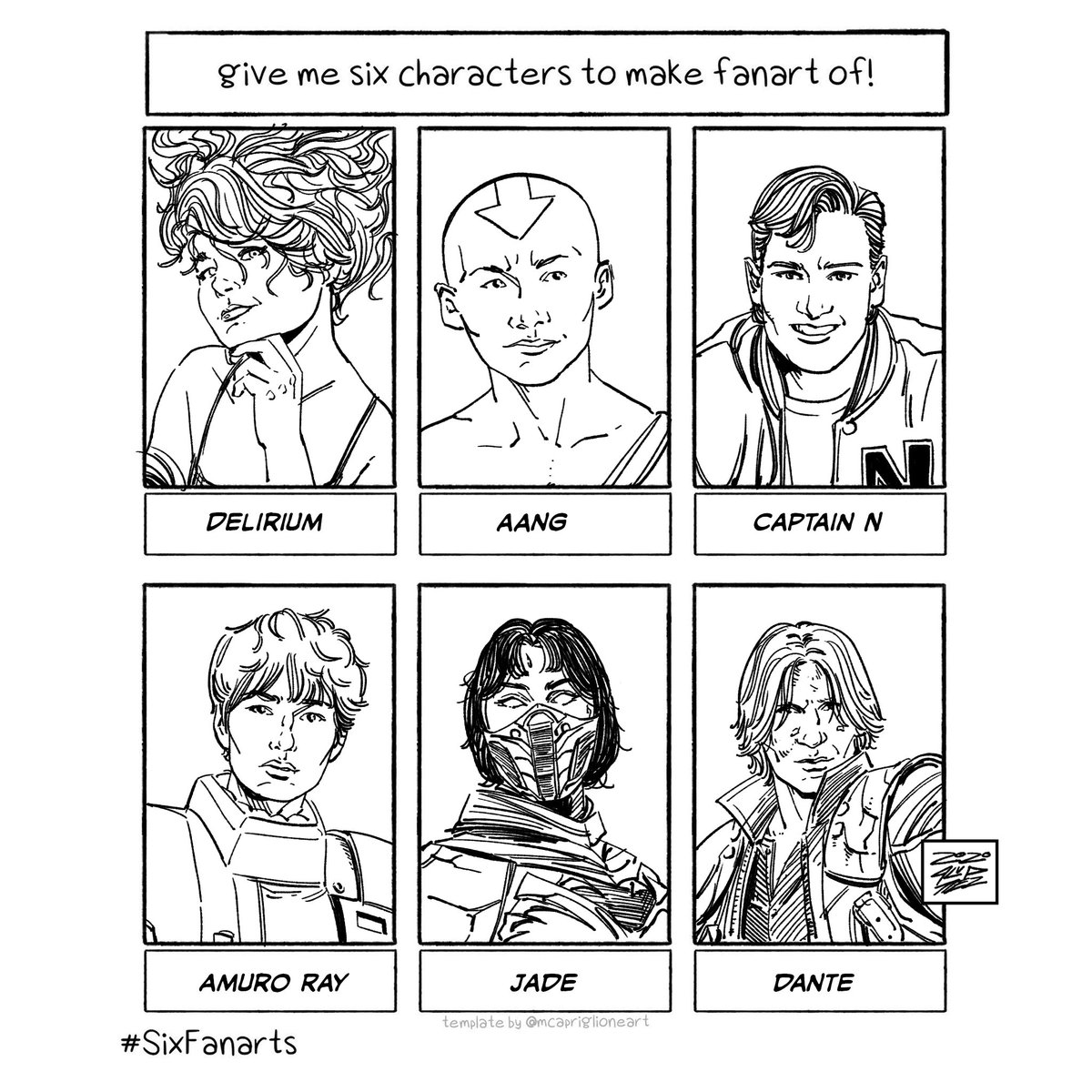 #SixFanarts Vol. 010 - Delirium (Sandman) - Aang (Avatar) - Captain N (Nintendo) - Amuro Ray (Gundam) - Jade (Mortal Kombat) - Dante (Devil May Cry)