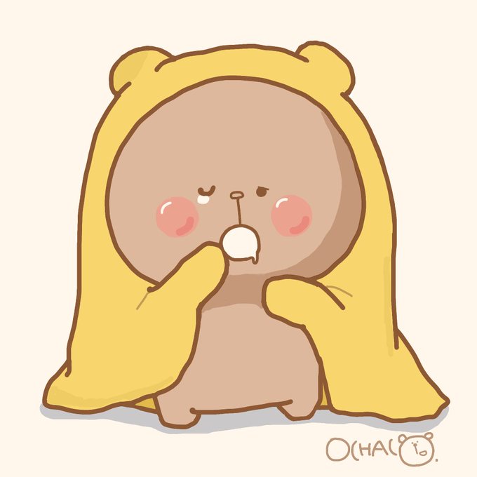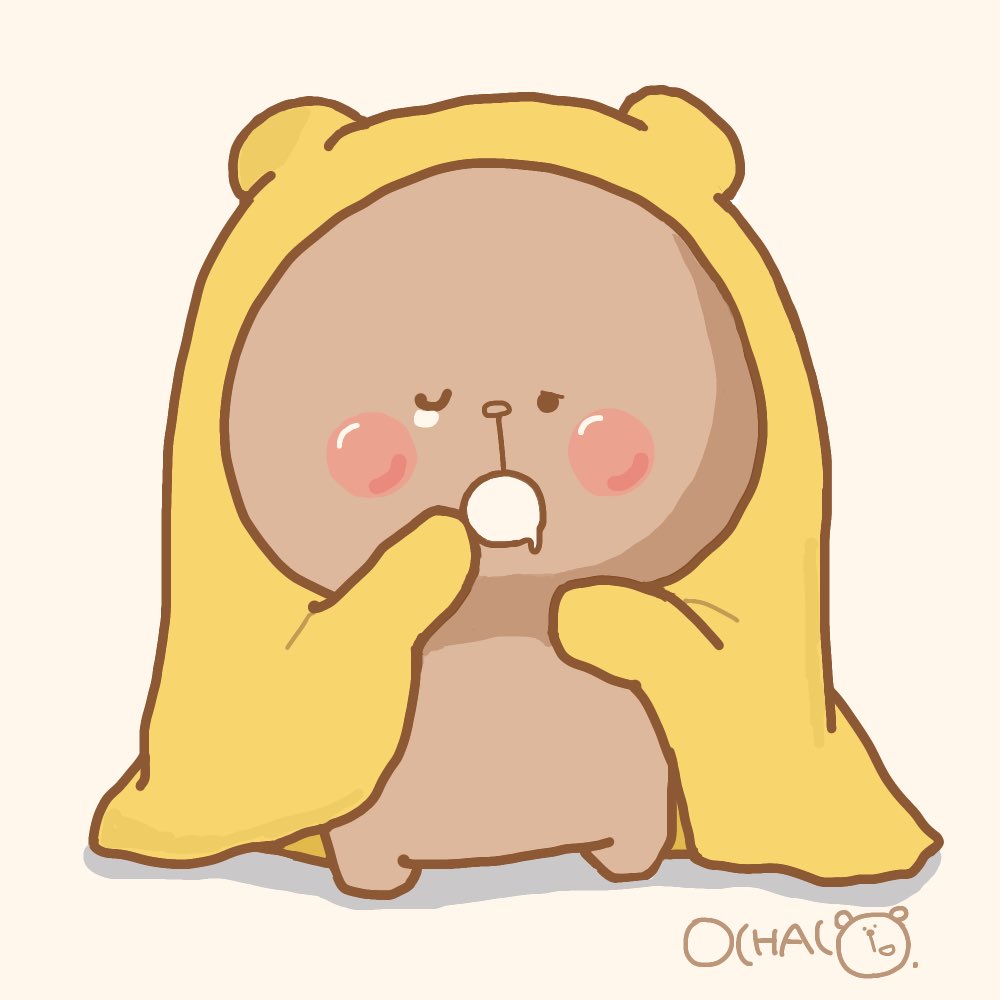 🐻おはようなのだぁ〜 🐻 まぁ しょんなに あせらじゅ☺️ ちょっとゆっくり あたたかい おちゃ でも いかがなのだ?🍵💓 #おちゃこのらくがき #ゆる〜いツイート #くまおのおはようツイート