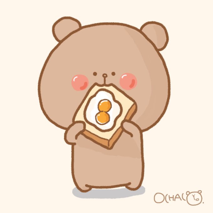 🐻おはようなのだぁ〜 ŧ‹”(๑´㉨`๑)ŧ‹"🍞🍳 きょ〜ね? めじゃまやき のたまごが ふたごしゃん だったよ😆😆✨ #おちゃこのらくがき #ゆる〜いツイート #くまおのおはようツイート