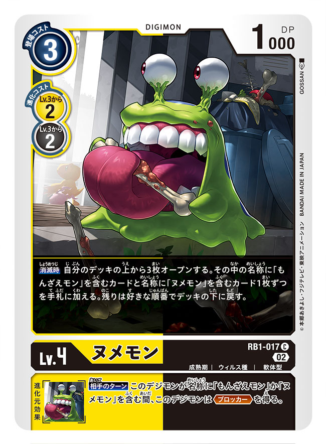 1月27日発売の【デジモンカードゲーム リブートブースター ライジングウインド】にて「ヌメモン」「もんざえモン」描かせて頂きました!宜しくお願い致します!(1/2) digimoncard.com #デジカ #デジモンカードゲーム #デジモン #Digimon
