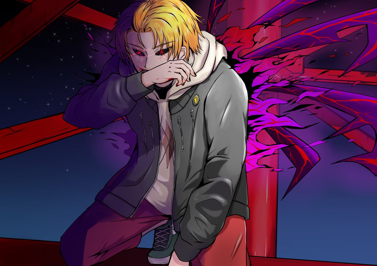 #るるのアトリエ #絵クス絵画 #にじさんじ妄想トーナメント戦 新解釈にじさんじ妄想トーナメント(今頃ですが) エビオがオルタ化してる解釈です(色も自己解釈です) 腕が切れていることに興奮するるるさんと、死を察して少し動揺するエクスさん