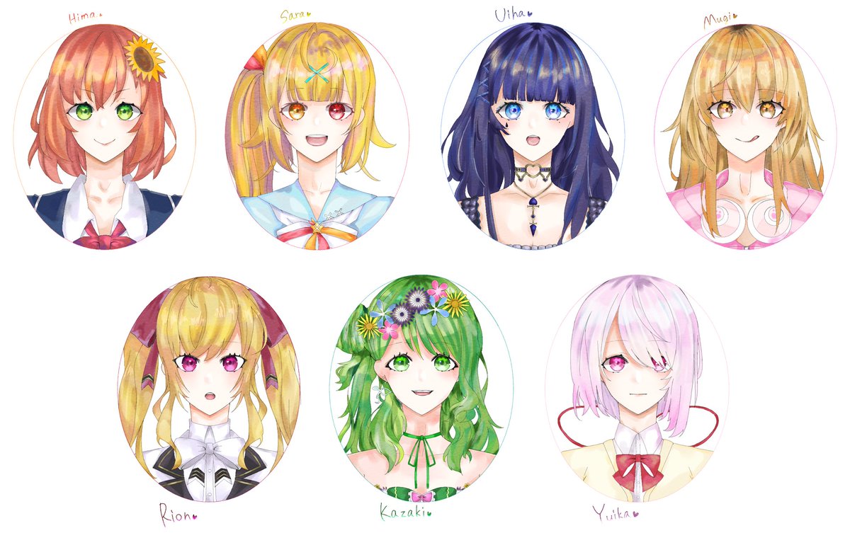 にじ女子の推しを描いた🌈💕 #ひまあーと #サラ星図 #ういはぁーと #むぎあーと #リオンあーと #森中びじゅつかん #しいなーと