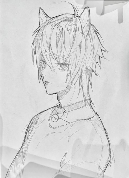 「猫耳」「ジト目」「男子」 のお題で描きました、デッサン中に