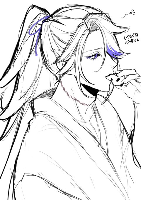 心喰くんが甘いものを好きだと聞いたのでラフ着で大福を食べる心喰くんを描きました #見返り心喰図