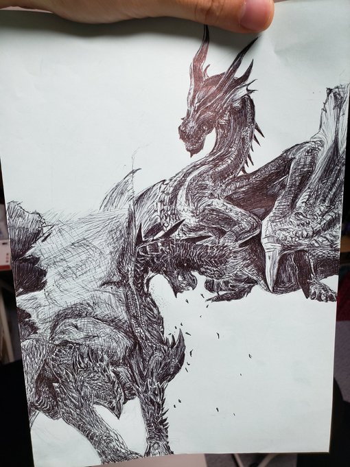 完成しました! ボールペン モンスターハンター アルバトリオン&ミラボレアス 頑張って描いたので褒めてください! #絵描きさんと繋がりたい #モンハン #モンスターハンター #絵柄が好みって人にフォローされたい #絵描きさんフォロバ100 #絵師さんフォロバ100