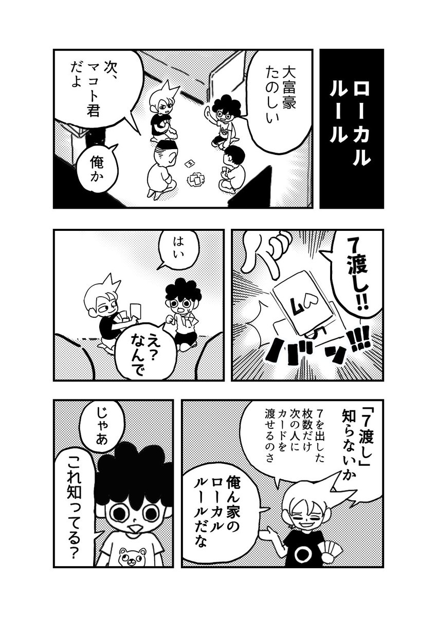 大富豪とか UNOとかの ローカルルールって おもろいですよね。 #漫画が読めるハッシュタグ