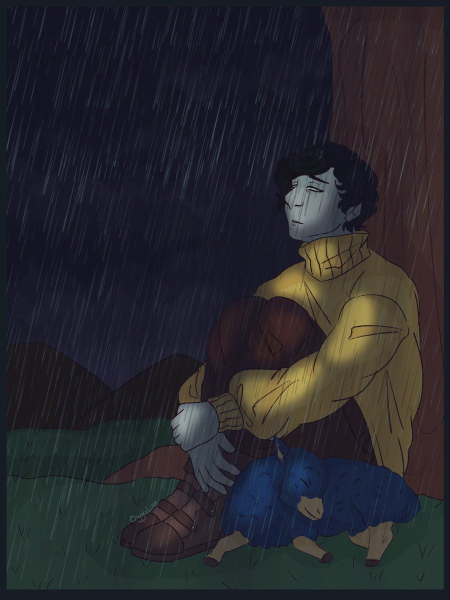 Ghostbur and Friend sitting in the rain #ghostburfanart #wilburfanart #mcyt #mcytfanart #dsmp #dsmpghostbur #digitalart