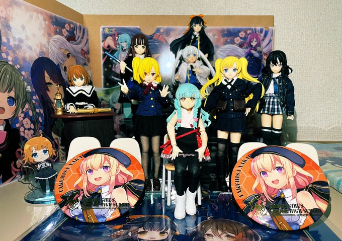 うちのドール全員で初めての撮影。 これなら記念撮影的に2列で並ばせたほうがよかったのかな? グッズ飾ってる雛壇を再利用しました! あと1人カスタムリリィが増えれば5人レギオンなんだよなぁ… #アサルトリリィドール部 #カスタムリリィ