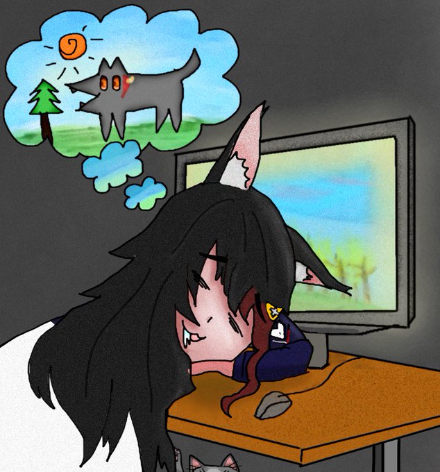 #みおーん絵 パソコンで寝てしまったミオしゃ いつもお疲れ様です 練習【8】- シーンづくり