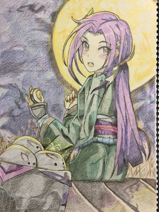 ルカ「お前さんも、アタシと一緒にお月見するかい?」 #プリコネR #イラスト #絵描きさんと繋がりたい #色鉛筆画
