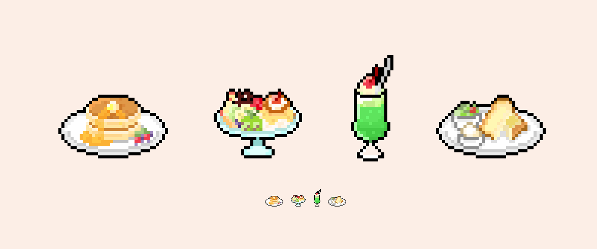 喫茶店とかでよくあるメニュー と原寸 #pixelart #ドット絵