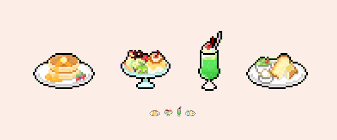 4 29 喫茶店とかでよくあるメニュー と原寸 #pixelart #ドット絵 23/06/15 00:22
