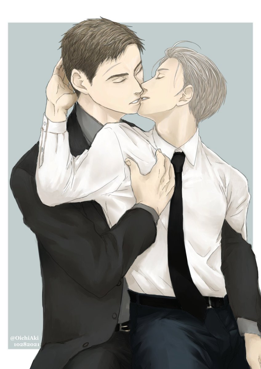 遡るほど(*ノェノ)キャーハズカシーなふたり。(絵的にも) #キスの日 二次/囀 過去絵で失礼します。