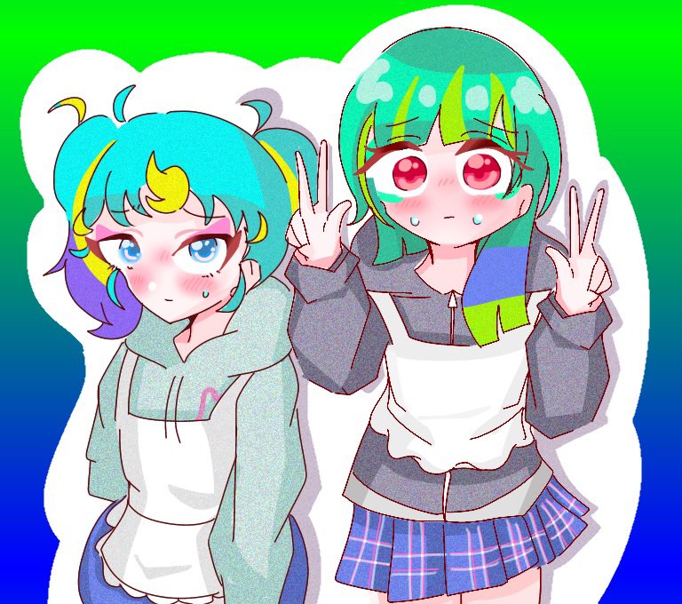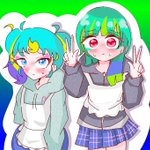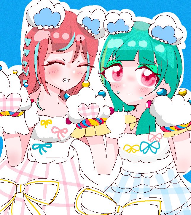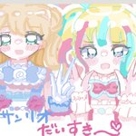 絵チャにてサンリオコーデ?まりあちゃんとだいあちゃん描きました🌈