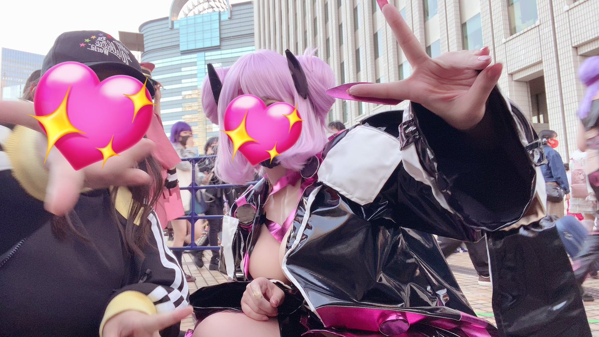 おしゃマクでお友達になった子に撮ってもらった1枚🤝💗🖤マクロスΔ闇マキナでした! (神戸からの)昨日の今日過ぎて身体バキバキでしたが池ハロ初参加とっても楽しかった~( *´꒳`*)💕一緒にお写真撮ってくれた方々ありがとうございました!✨✨ #池袋ハロウィン2022 #池ハロ