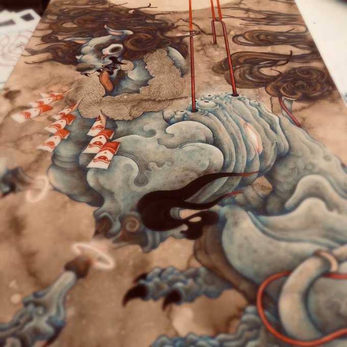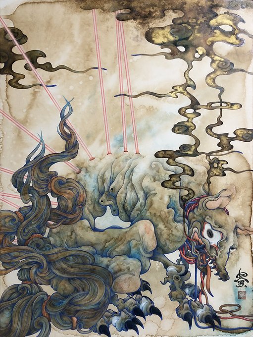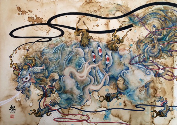 328 2493 #作品を載せて自分の作品を知ってもらおう 妖怪的なもの、神仏的なもの、霊獣的なものを描いています。 22/12/21 11:22