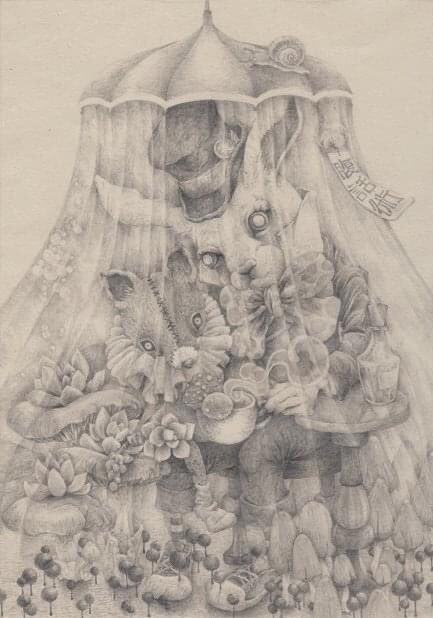 47 300 #PortfolioDay I draw with coffee, transparent watercolor, colored pencils, and pens etc. 23/07/12 21:45