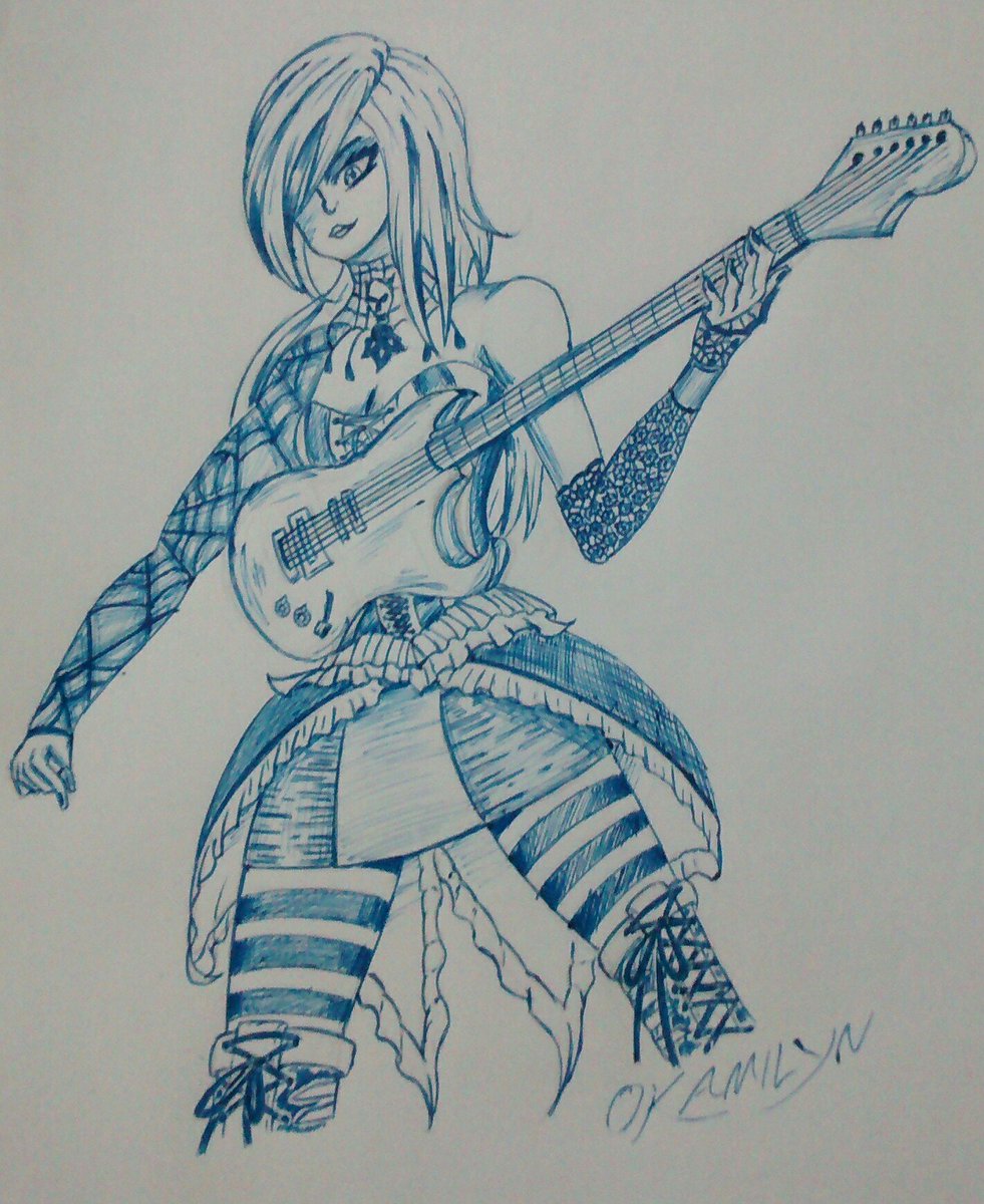 Inktober day 27: music Pandora (Guitar hero) #inktober #inktober2020 #inktoberday27 #guitar #guitarhero #rock #blue #gothgirl #gameart #fanart #desenho #drawing #dibujo #anime #animegirl #activision #music #whitehair #gothmakeup #gothclothing