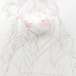 今回少し過程を撮ってました。 完全な線画は残ってなかった オレンジっぽい線は下絵の水彩色鉛筆です。 #皆さん線画と塗った後を見せてください