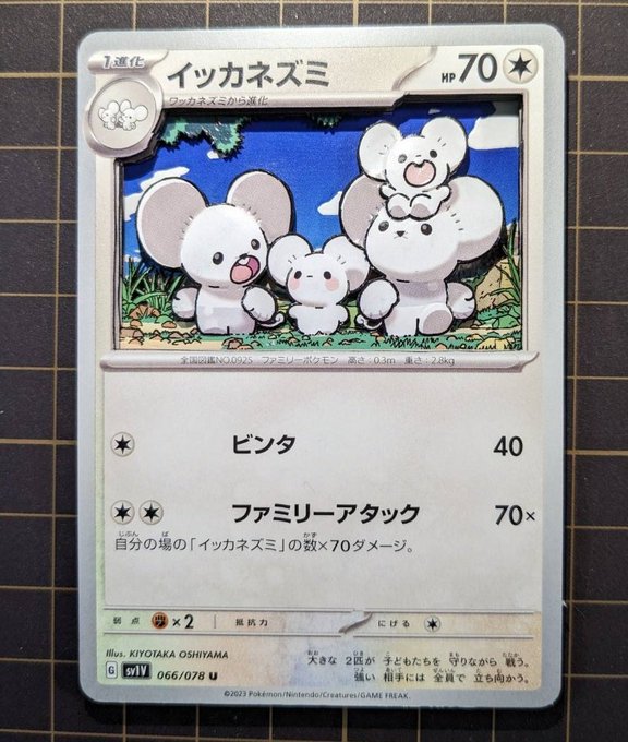 1 7 このイラストめっちゃかわいい🐭 4枚使用です😁 ポケモンカード イッカネズミ illus:KIYOTAKA OSHIYAMA #シャドーボックス #ポケモンカード 23/01/26 09:52